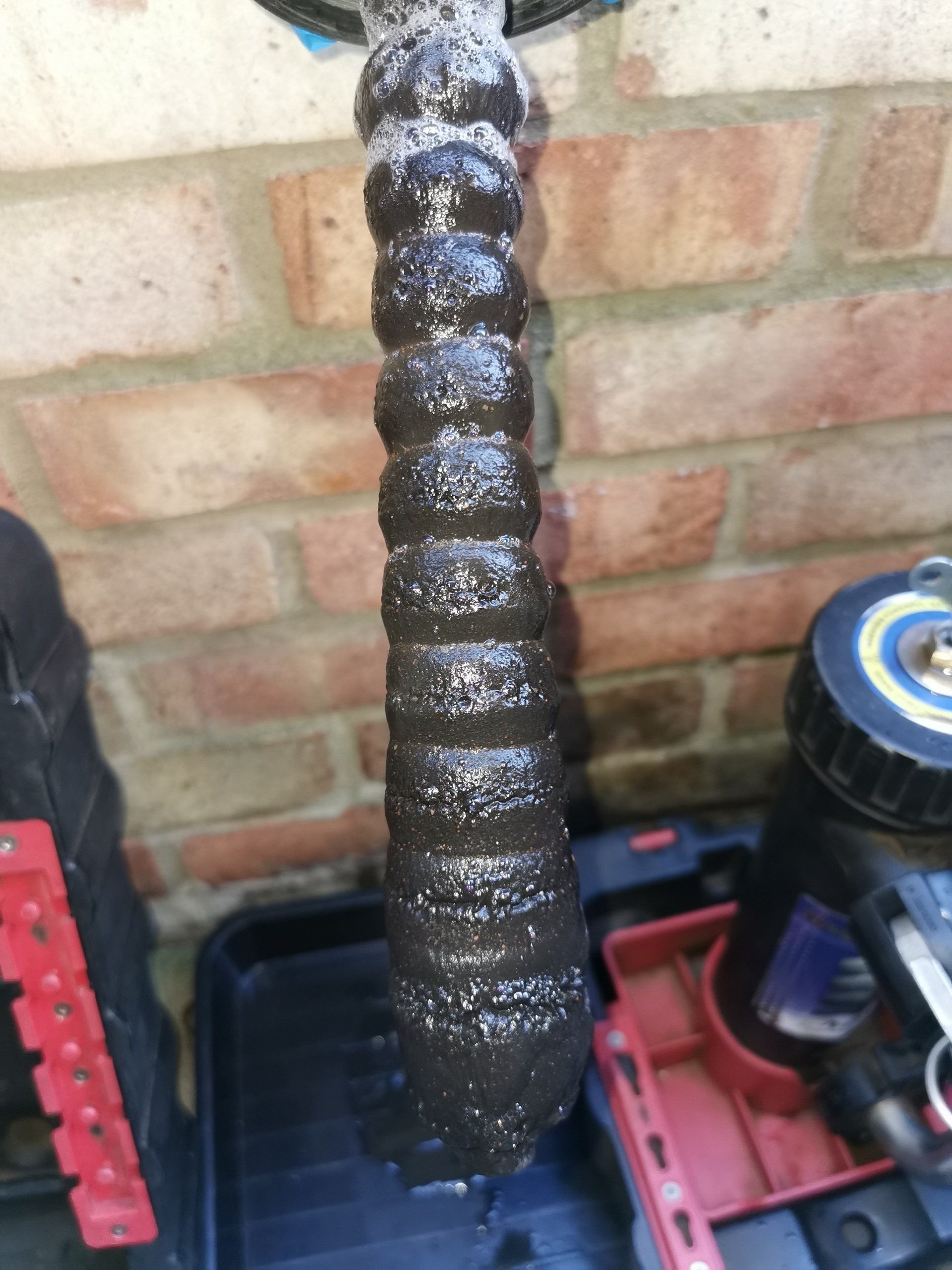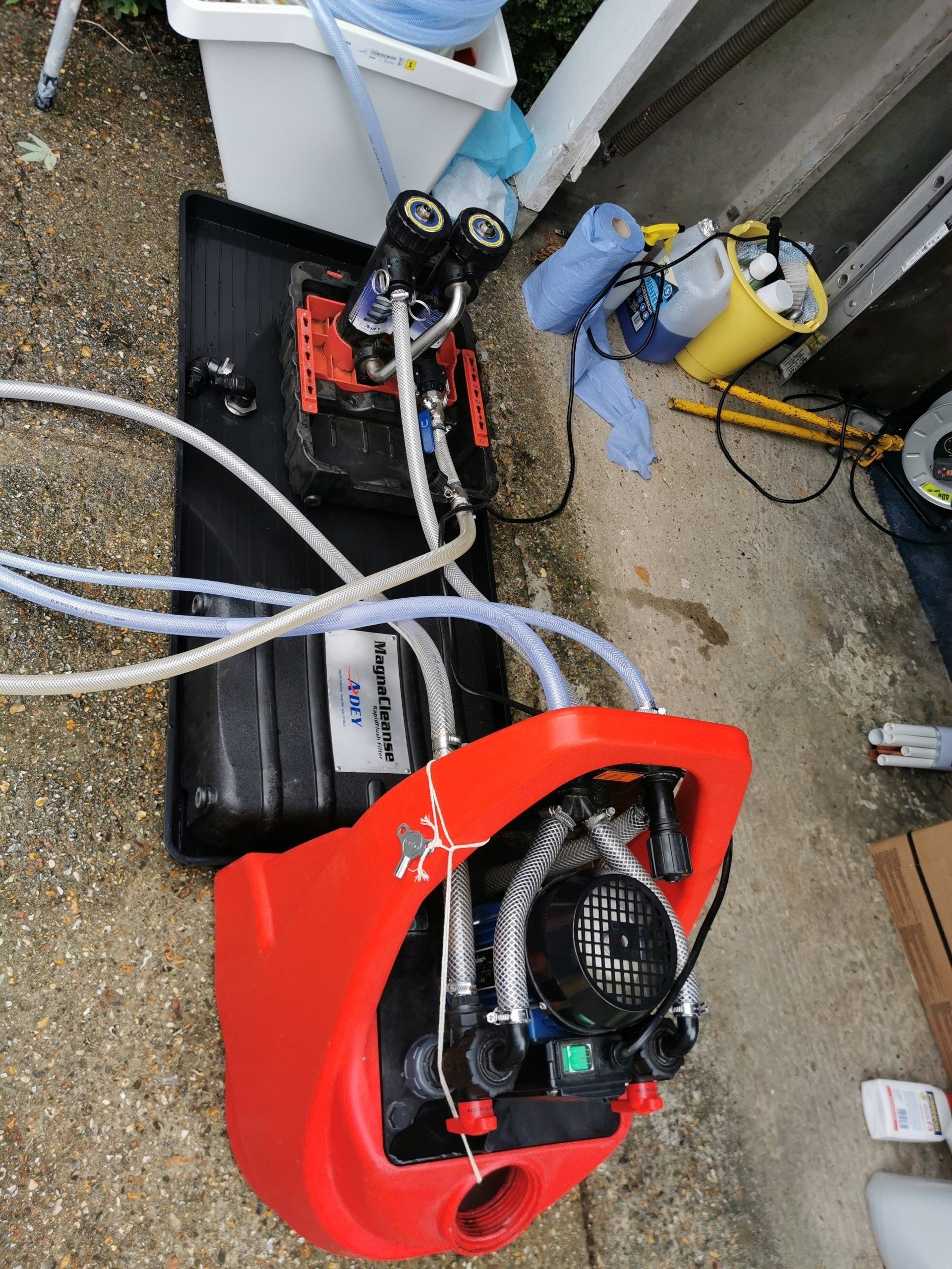 This shows the stages of powerflushing sludge and debris from ch systems. Aswell as the dirty water shown inline magnets catch alot more solid magnetite